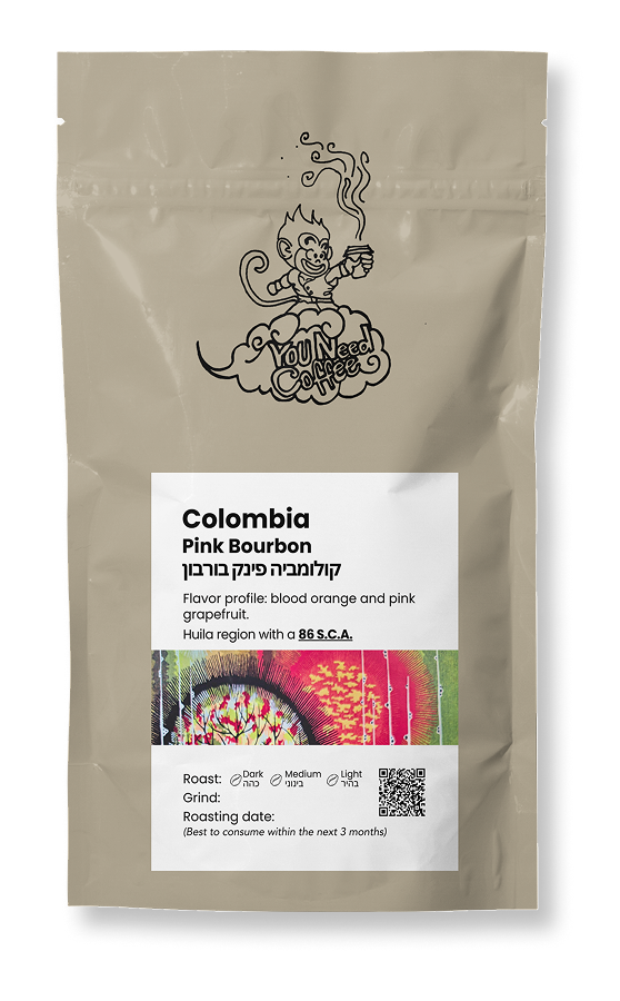 קפה קולומביאני מאזור הוילה מסוג Pink Bourbon וציון גבוה של 86 - טעמים מאוזנים, עם חמצמצות קלה, נגיעה של שוקולדיות ומתיקות נעימה.